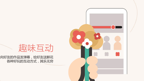 向好友的作品發(fā)彈幕,給好友送鮮花,各種好玩的互動方式,奇樂趣窮,