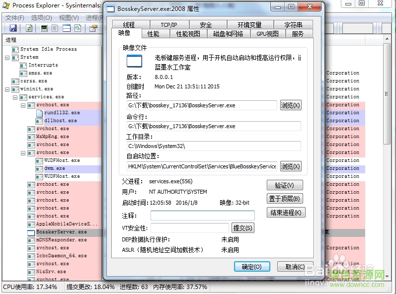 3.如果確定是這個(gè)程序造成的,可以點(diǎn)擊鼠標(biāo)右鍵,在彈出的選項(xiàng)中點(diǎn)擊【屬性】,打開屬性窗口后,點(diǎn)擊頂部選項(xiàng)欄的【映像】選項(xiàng),如winwin7分享的圖片所示: