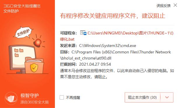 2.等待一會,過程中360安全衛(wèi)士等殺毒軟件會提示“有程序修改關(guān)鍵應(yīng)用程序文件,建議阻止”,選擇“允許程序所有操作”,并勾選不再提示,建議安裝前關(guān)閉360,建議安裝前關(guān)閉360,建議安裝前關(guān)閉360!