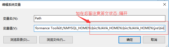 14.然后在后面加 ;JAVA_HOME%\bin;%JAVA_HOME%\jre\bin 注意;號隔開,不然沒效果的,然后點(diǎn)擊確定