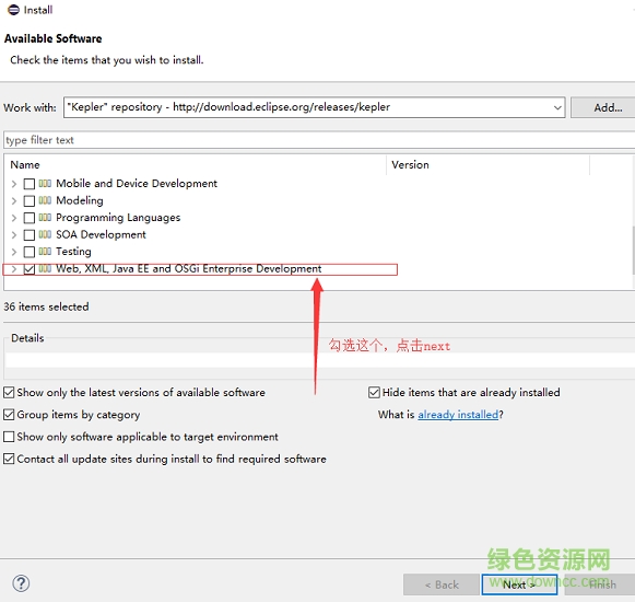 6.然后上面輸入 "Kepler" repository 下面輸入http://download.eclipse.org/releases/kepler 最后點(diǎn)擊add