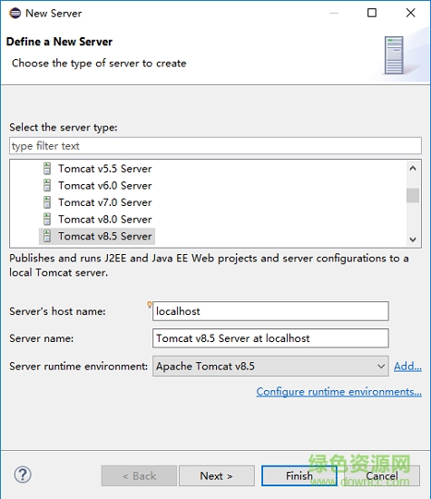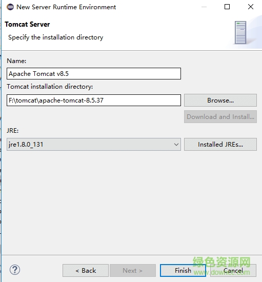 17.小編這里是8.5版本所以選擇的8.5(如圖),jre那個就是剛剛安裝的jdk版本,點(diǎn)擊finish