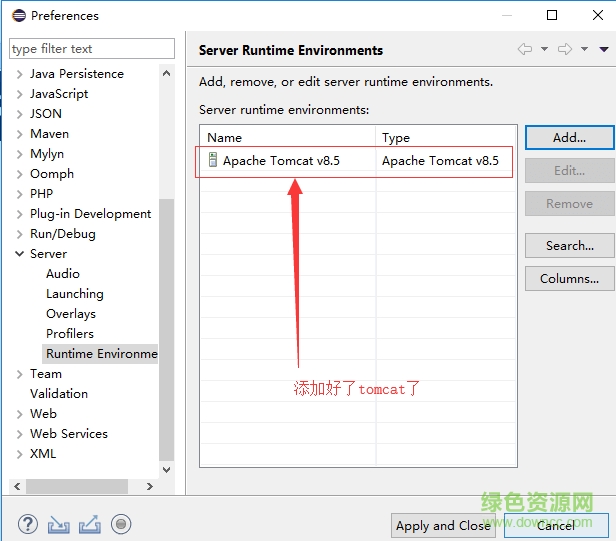 18.可以看到tomcat服務(wù)器了,點(diǎn)擊apply and close
