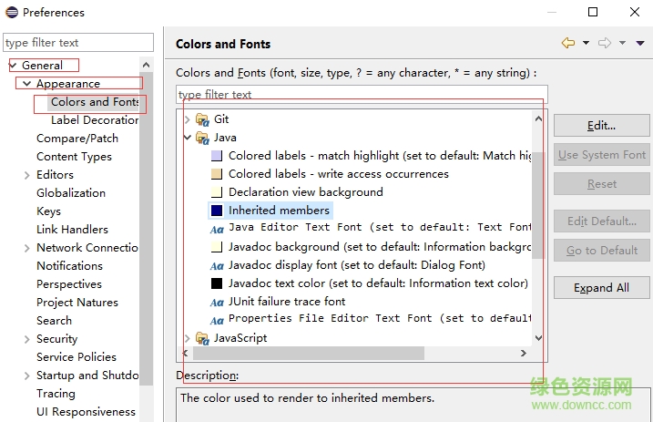 4.找到General->Appearance->Colors and Fonts 再看右側(cè)框就能看到字體和顏色