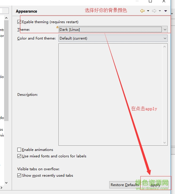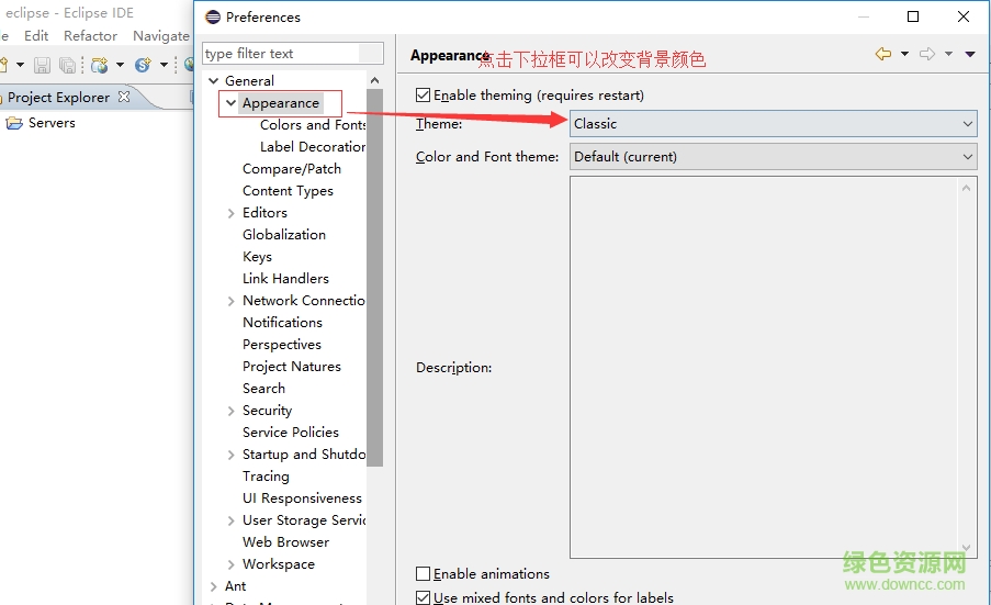 5.找到Appearance點(diǎn)擊右側(cè)的Classic下拉就能選擇背景色了