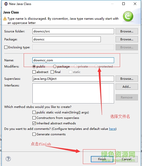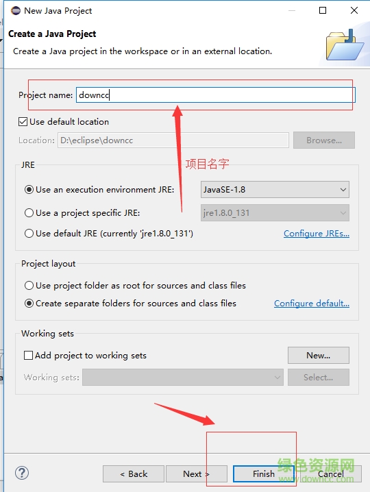 7.會出現(xiàn)一個創(chuàng)建java文件項(xiàng)目,輸入文件名downcc_com