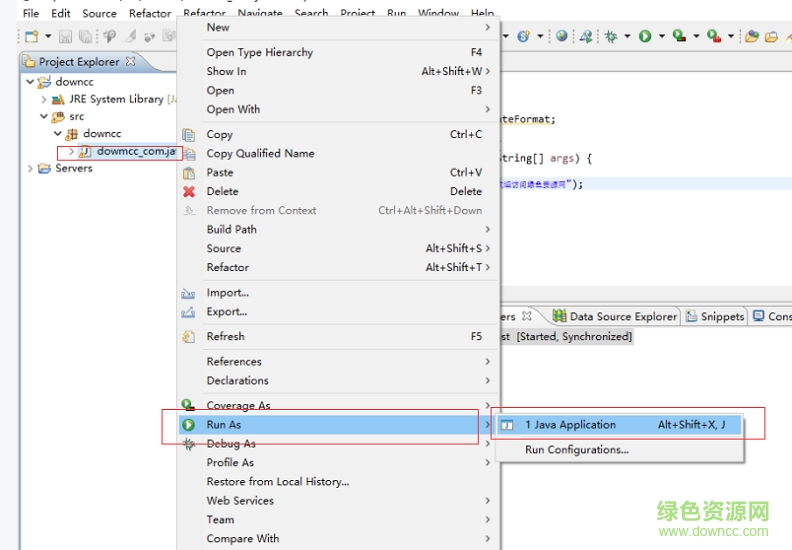 10.然后在downcc_com右鍵點(diǎn)擊run as->java Application
