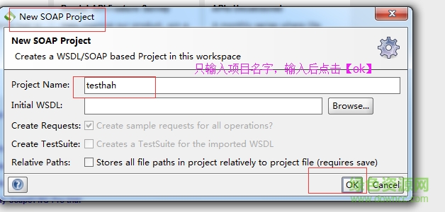 設(shè)置好后,點(diǎn)擊”ok“后,soapui主界面的左邊欄就會(huì)顯示剛新加的項(xiàng)目,如圖: