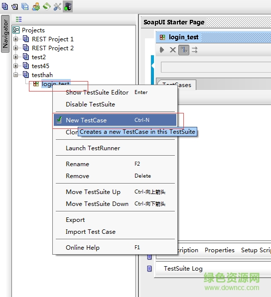 b、創(chuàng)建測(cè)試用例,選中測(cè)試組名稱右鍵新建測(cè)試用例,如下圖: