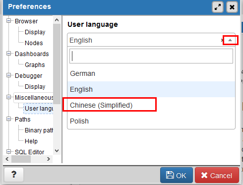 然后在雜項下拉菜單中選擇【user language】的界面語言,如winwin7分享的圖片: