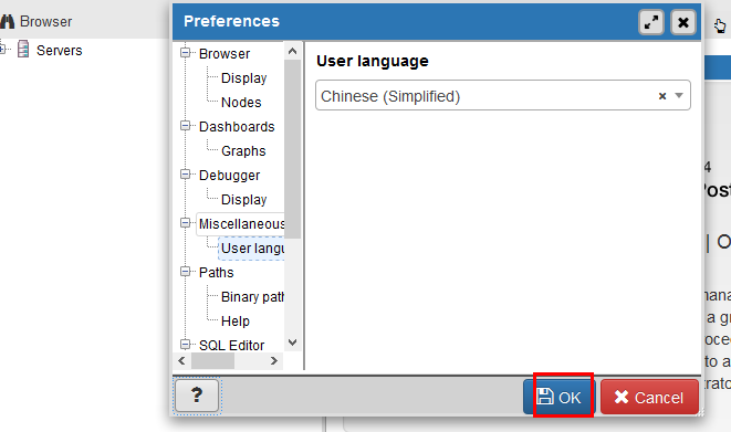 緊接著,彈出了如下所示的pgAdmin4的首選項設(shè)置窗口,如winwin7分享的圖片: