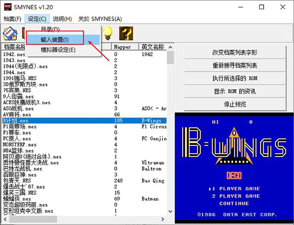 打開小霸王模擬器,進(jìn)入到主界面,如圖所示,點(diǎn)擊界面上方的“設(shè)定”選項(xiàng),然后在下拉的選項(xiàng)中點(diǎn)擊“輸入裝置”選項(xiàng),如下圖: