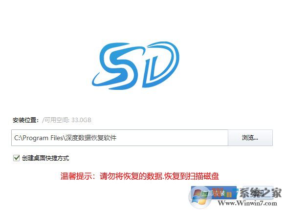 3、進(jìn)入安裝程序目錄選擇界面,請勿將程序安裝到您有數(shù)據(jù)需要恢復(fù)的分區(qū)里。