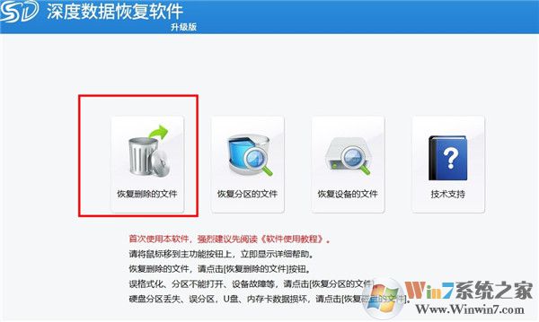 1、進(jìn)入主功能界面,點(diǎn)擊主界面上的"恢復(fù)刪除的文件"功能按鈕。