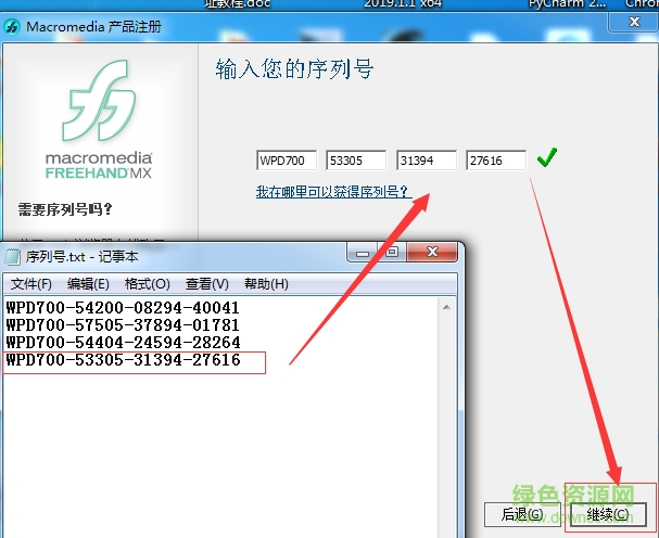 10.然后如圖把序列好復(fù)制進(jìn)去,點(diǎn)擊繼續(xù),破解成功