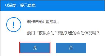 u盤啟動盤制作完成后,會彈出新的提示窗口,對此我們點擊“是”對制作完成的u盤啟動盤進行模擬啟動測試,測試u盤啟動盤是否可用,如圖所示: