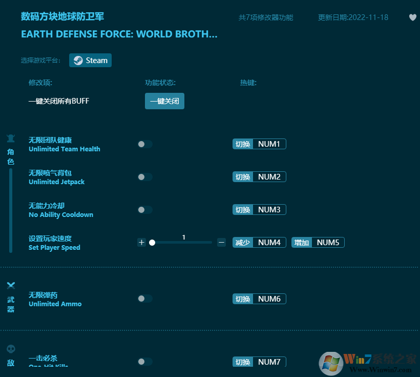 數(shù)碼方塊地球防衛(wèi)軍修改器功能:
