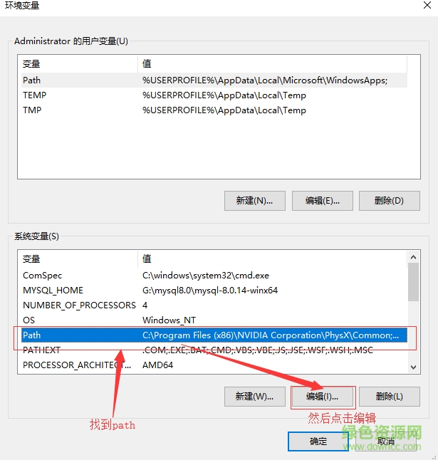6.找到path,然后點擊編輯,如winwin7分享的圖片: