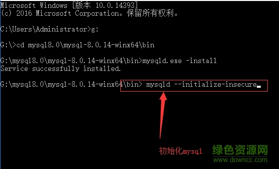 15.初始化 mysql,創(chuàng)建一個具有空密碼的root用戶,輸入mysqld --initialize-insecure