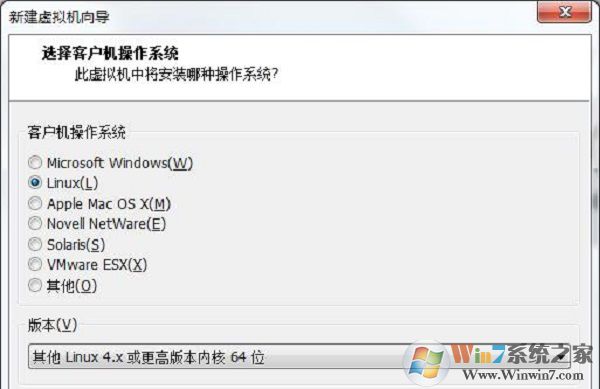 如果需要安裝在虛擬機(jī)的小伙伴們,要注意哦,請(qǐng)選擇“其他Linux4.X或更高版本內(nèi)核 64位”。