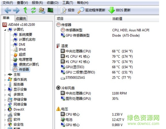 找到左側(cè)的菜單欄中的計(jì)算機(jī),然后在計(jì)算機(jī)下面找到傳感器,這個(gè)時(shí)候點(diǎn)擊傳感器,過一會就會彈出檢測的情況,如左側(cè)的溫度列表。