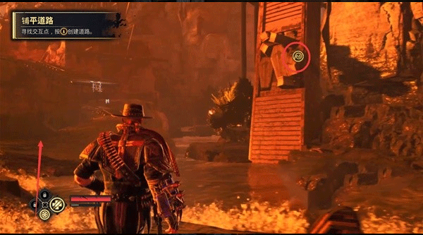 1、游戲地圖中有很多發(fā)光的鐵鏈,代表此處可互動。高處的特殊標(biāo)記代表可使用特殊動作,比如鉤繩;
