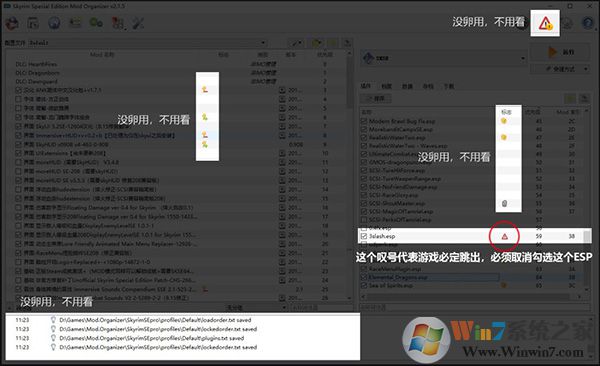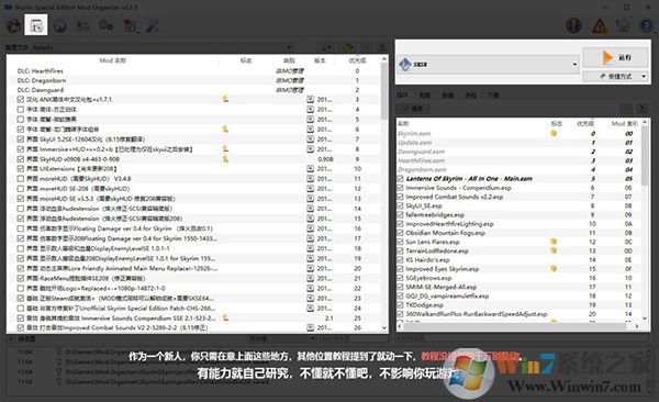 特別提醒1:千萬不要用SkyrimLauncher.exe或者SkyrimSELauncher.exe進游戲,mod會全部失效,那個只是用來調畫質的!