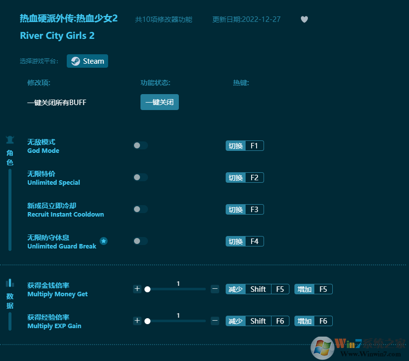 熱血硬派外傳熱血少女2修改器功能: