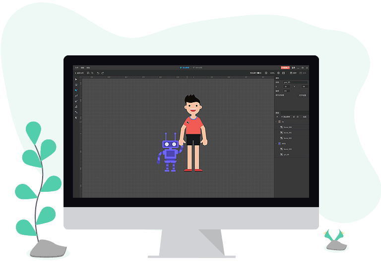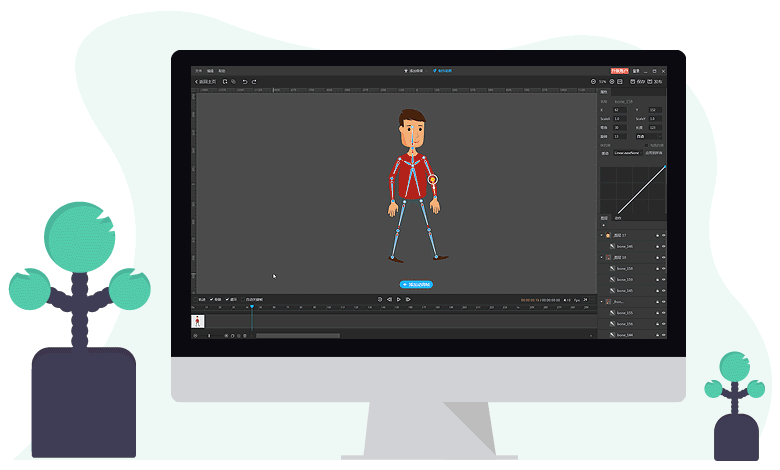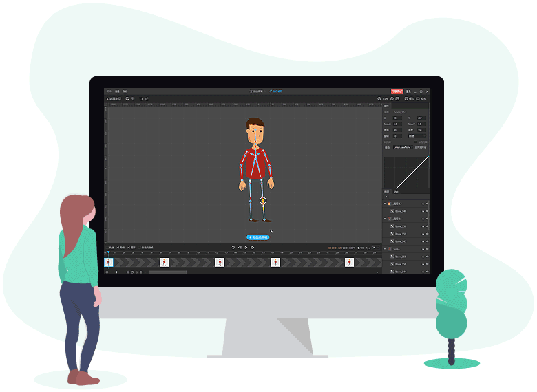 打破圖形與2D角色動(dòng)畫(huà)的限制,添加骨骼到PSD分層圖層,通過(guò)簡(jiǎn)單易用的骨骼動(dòng)畫(huà)工具和骨骼模板,輕松將圖片(PNG和PSD格式)轉(zhuǎn)變?yōu)?D動(dòng)畫(huà)角色,為視頻、網(wǎng)頁(yè)等提供更有趣的角色素材。