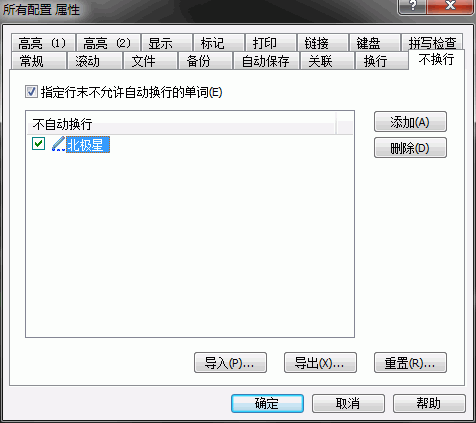 勾選上“指定行末不允許自動(dòng)換行的單詞(E)”,然后就可以添加不允許換行的單詞了。實(shí)際上,這里的單詞應(yīng)該理解為詞組。如下圖: