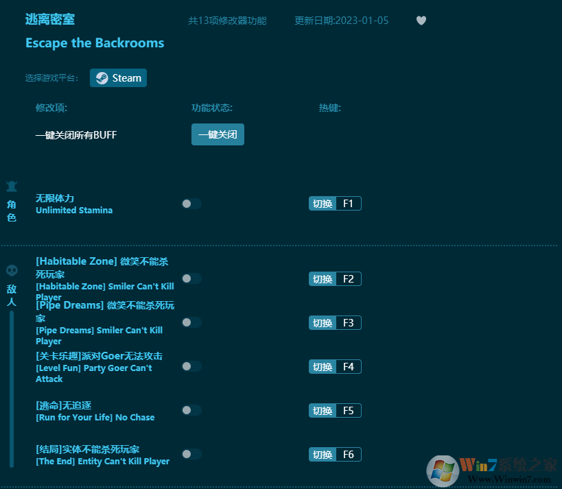 逃離密室修改器功能介紹: