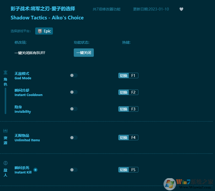 影子戰(zhàn)術(shù)將軍之刃愛子的選擇修改器功能介紹: