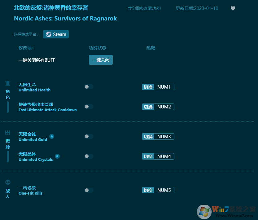 北歐的灰燼諸神黃昏的幸存者修改器功能介紹: