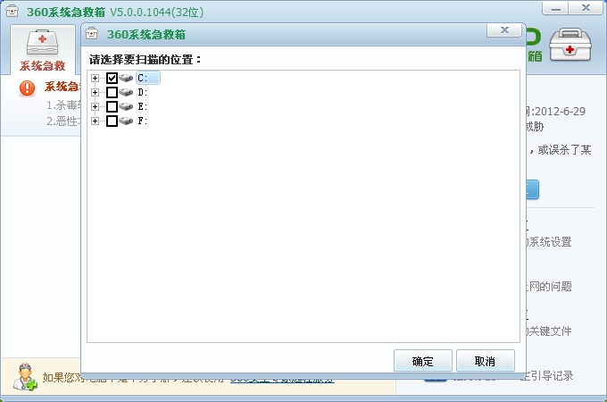 6,如何使用360系統(tǒng)急救箱的自定義掃描功能?