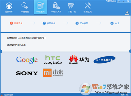 1、手機(jī)連接電腦,啟動完美刷機(jī),立刻連上手機(jī)設(shè)備。在這個過程中如果您是第一次連接設(shè)備,完美刷機(jī)會自動為您安裝手機(jī)驅(qū)動。