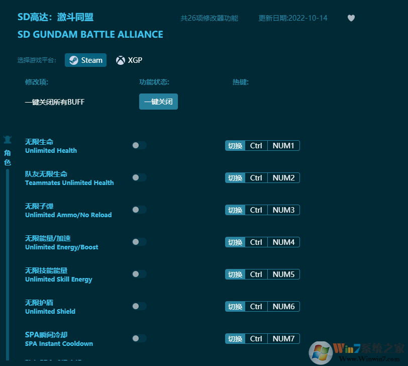 SD高達激斗同盟修改器功能介紹: