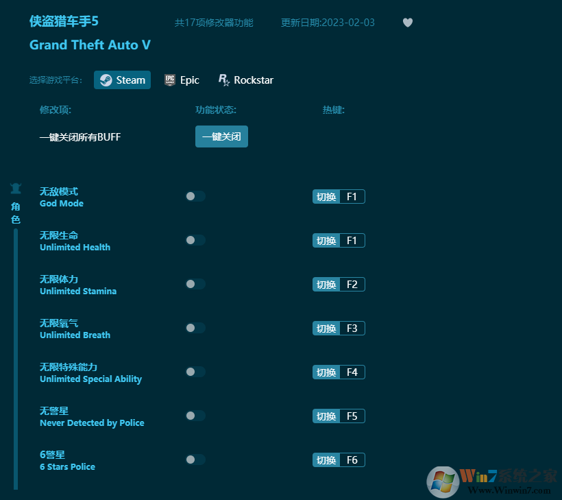 1、下載GameBuff_xtzj7.exe后請先進行安裝,然后搜索“《俠盜獵車手5》”游戲;2、使用前先退出殺毒軟件井關(guān)閉Windows Defender