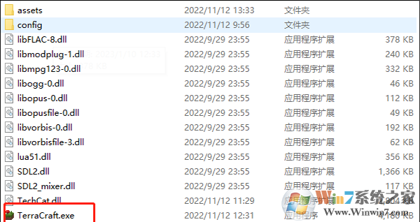 2、在文件夾里雙擊“TerraCraft.exe”打開游戲。