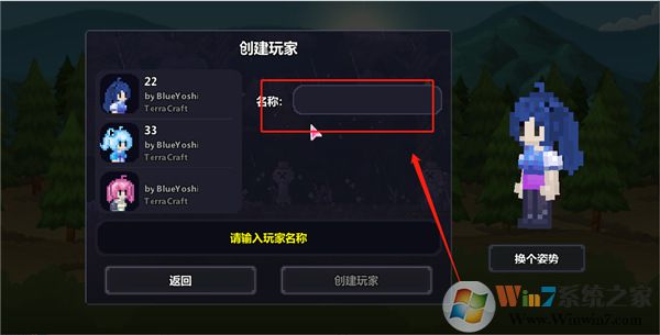7、創(chuàng)建玩家需要先取一個游戲角色名稱或者是可以給角色換一個姿勢。