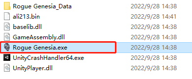 在本站下載羅格救世傳說游戲壓縮包后解壓打開,雙擊打開“Rogue Genesia.exe”