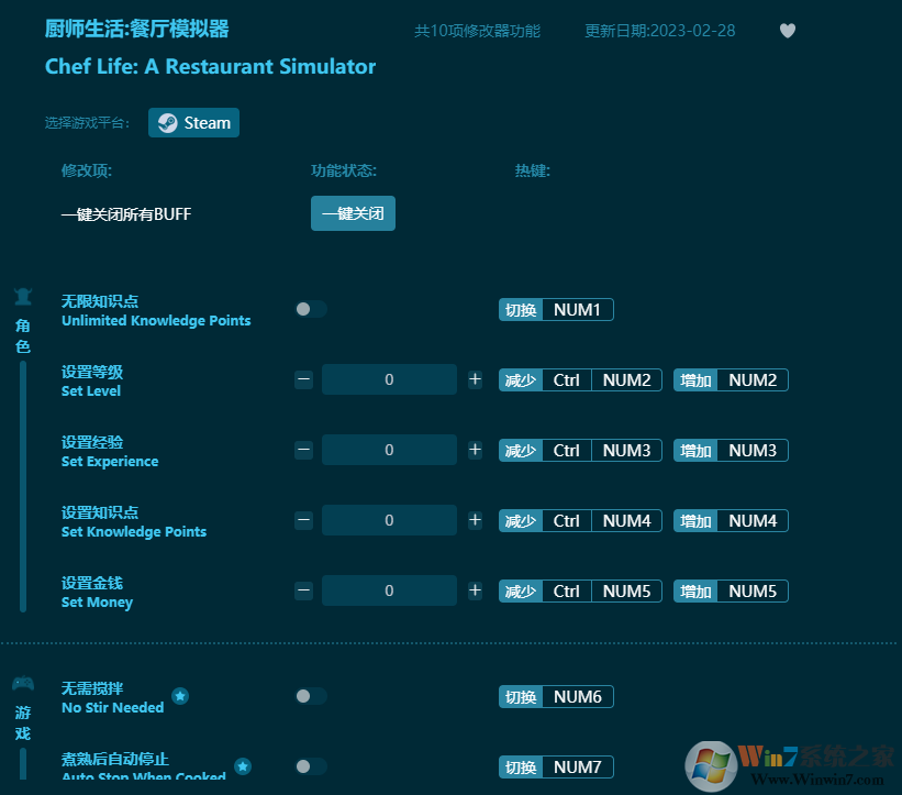 廚師生活餐廳模擬器修改器功能介紹: