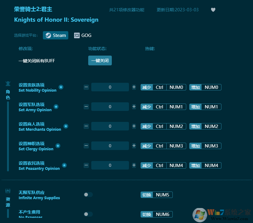 榮譽(yù)騎士2君主修改器功能介紹: