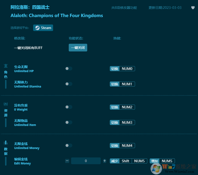 阿拉洛斯四國戰(zhàn)士修改器功能介紹: