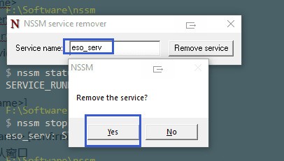 2)不彈出確認(rèn)窗口: nssm remove confirm