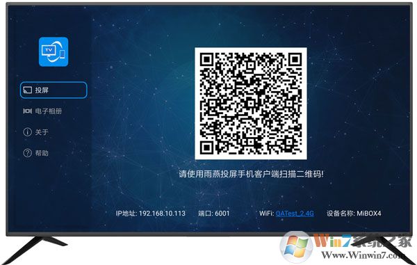 2、安裝雨燕投屏,打開安卓電視的雨燕投屏界面