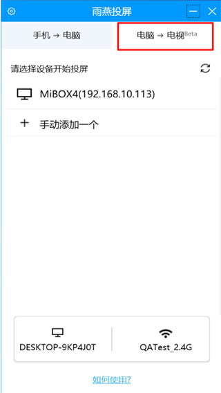雨燕投屏電腦版使用教程