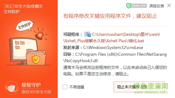 1.解壓縮,找到”!綠化.bat“雙擊打開(kāi),360安全衛(wèi)士等殺毒軟件會(huì)提示危險(xiǎn)(如下圖),請(qǐng)選擇“允許程序所有操作”,阻止的話會(huì)綠化失敗,軟件就無(wú)法正常使用。(軟件本身沒(méi)有任何問(wèn)題,小編親測(cè)?。?/p>