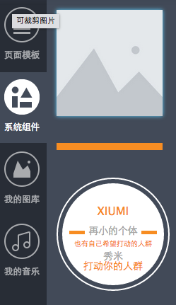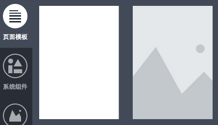 左側(cè)工具欄在沿用1.0模板的基礎(chǔ)上,新增了系統(tǒng)組件,尤其第一個(gè)組件模板,你可以放入自己設(shè)計(jì)的組件。