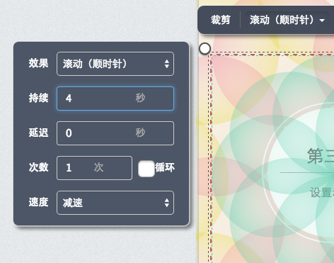 速度:這里可以進(jìn)一步將動(dòng)效調(diào)整為勻加速或勻減速等效果。