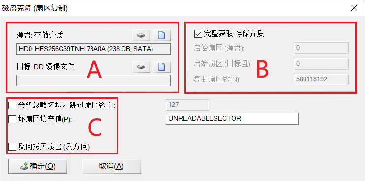 上面完成后,就可以點(diǎn)擊確定開(kāi)始制作鏡像了(如果磁盤(pán)有壞區(qū),可勾選下面的選項(xiàng),跳過(guò)或填充壞扇區(qū))。